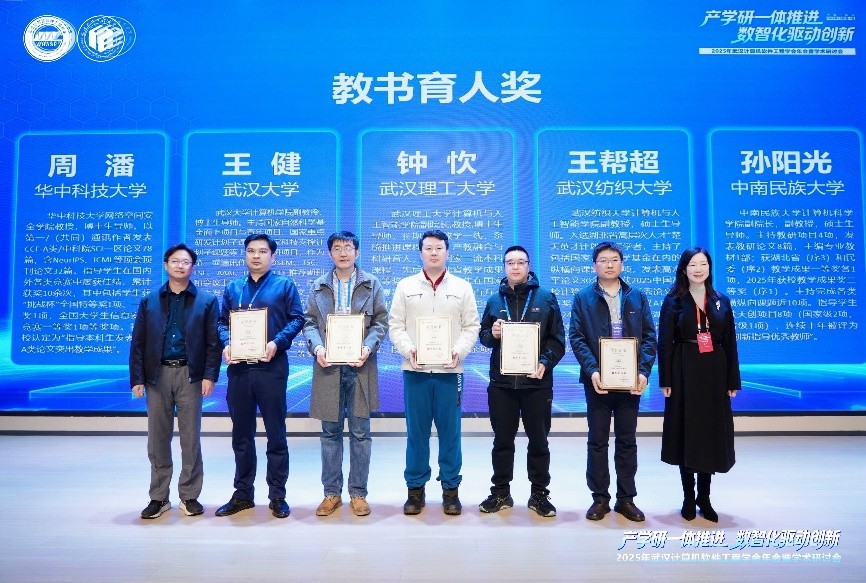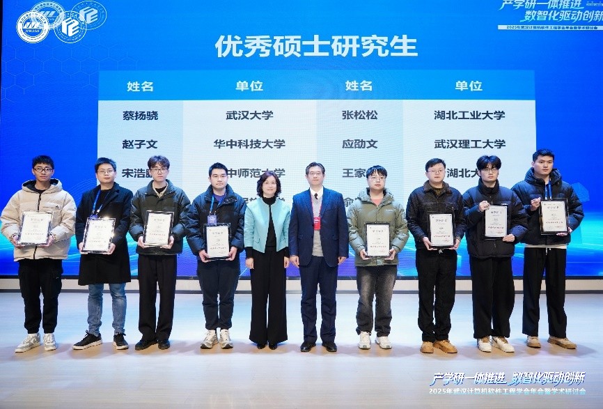学院院长帖军、副院长孙阳光及施朦副教授等多名软件工程系教师参加了本次武汉计算机软件工程学会年会暨学术研讨会。其中,帖军教授主持了 2025 年度学会颁奖仪式,我院孙阳光老师荣获 “教书育人奖”,戴仁可同学荣获 “优秀硕士研究生奖”;参会期间,我院教师与行业同仁围绕软件领域产学研融合、数智化创新、人才培养等核心议题展开交流研讨,本次参会不仅深化了我院与省内高校、科研院所及企业的联动合作,也为学院相关学科的高质量发展提供了助力。